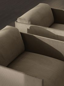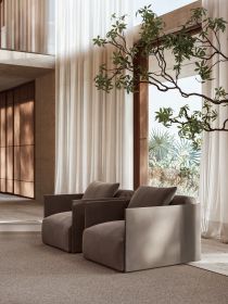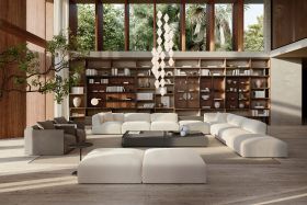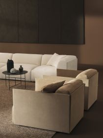 Klare Linien und schlanke Silhouetten verleihen dem Sofa eine leichte, elegante Erscheinung, während die großzügige, weiche Polsterung ein intensives Entspannungserlebnis ermöglicht. Ein zentrales Merkmal von Hybla ist seine Modularität: Flexible Konfigurationen erlauben es dem Sitzsystem, sich unterschiedlichen räumlichen Anforderungen anzupassen.