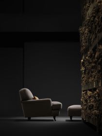 Man sitzt angenehm tief und außergewöhnlich komfortabel – ermöglicht durch die entspannte Formgebung und die zeitlose, universelle Eleganz. Der von Vico Magistretti entworfene Raffles-Sessel lädt zum Zurücklehnen und Entspannen ein, insbesondere in Kombination mit dem dazugehörigen Hocker.