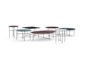 Er überzeugt durch seine außergewöhnliche Vielseitigkeit: Zum einen durch seine hohe Funktionalität, zum anderen durch die Vielzahl an verfügbaren Formen, Höhen und Materialausführungen. Die Tischplatte ist in unterschiedlichen Varianten erhältlich – von verschiedenen Marmorsorten über Eiche bis hin zu einer Ausführung mit „Soft-Touch“-Nanotechnologie, die sich besonders angenehm anfühlt. Ob rund oder eckig, niedrig oder höher positioniert – der Tisch fügt sich harmonisch in unterschiedliche Wohnsituationen ein und bereichert den Bereich im Wohnzimmer, der dem Entspannen oder Lesen gewidmet ist.