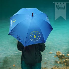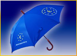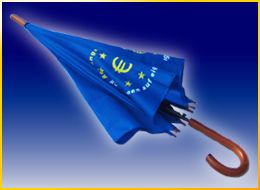 Der ultimative Euro-Rettungsschirm als Regenschirm ist endlich da! Gehänselt als Börsen-Unwort des Jahres 2010 - verrufen, verunglimpft und verlacht: Jetzt ist er endlich da! Geprägt und gepriesen von spitzfindigen Polit-Slang-Designern, unübersehbar in Medienpräsenz und realer Auswirkung, wird er nun endlich für alle anfassbar: Der Euro-Rettungsschirm - mehr als nur ein Regenschirm! Ob warmer Regen oder kalte Dusche – je nach Standpunkt aufgespannt, behütet er seinen Träger und begleitet ihn und dessen Schäfchen ins Trockene. Als Stütze oder Krücke eingesetzt, hält er uns aufrecht. Sein ergonomischer Griff bietet Halt an lauen wie an stürmischen Tagen.