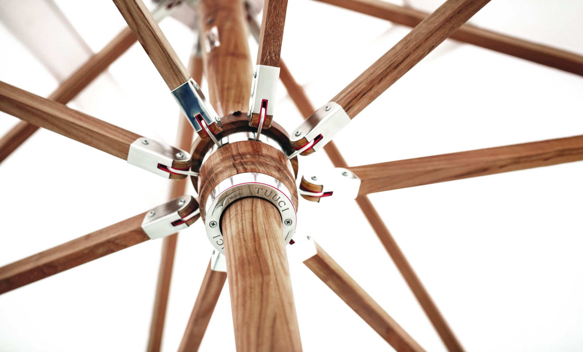 Der Ocean Master MAX Northstar Nautical Teak verbindet klassische Segelarchitektur mit moderner Ingenieurskunst: edles, hochwertiges Teakholz trifft auf korrosionsbeständige, maritime Komponenten und präzise verarbeitete Details. Charakteristisch sind die polierten Ridge-Details sowie der teleskopierende Aluma-CORE Mast, der das Öffnen und Schließen ermöglicht, ohne dass Möbel unter dem Schirm im Weg stehen.