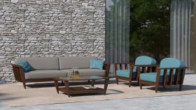 YACHTLINE REEF • Loungesessel aus Teak- oder Irokoholz 111 cmDie REEF-Kollektion ist eine Outdoor Loungegruppe, die für die Gestaltung eines ruhigen, abgelegenen Ortes gedacht ist, wo Sie sich vollkommen entspannen und die Eitelkeit vergessen können. Das Design dieser Serie ist so ausgelegt, dass Sie verschiedene Möglichkeiten zur Entspannung haben: Sonnenbaden auf einem Liegestuhl, Relaxen auf einem bequemen Sofa, ein Nickerchen auf einem Sessel oder einer Sonnenliege machen.