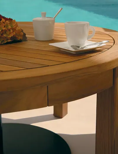 Teakholz gilt als eine der hochwertigsten Holzarten für den Einsatz im Freien und bietet eine Reihe von Vorteilen: