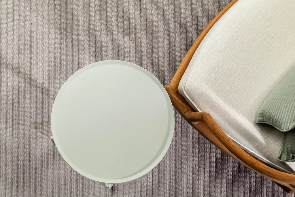 Setzen Sie Farben ein, um Ihre Gartenmöbel hervorzuheben oder zu harmonisieren. Klassische weiße Eisenmöbel wirken besonders elegant vor einem Hintergrund in üppigem Grün, während naturbelassenes Teakholz gut zu neutralen, erdigen Tönen passt.