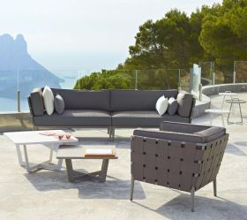 Die Conic-Lounge-Kollektion besteht aus einer Reihe von Modulen, die Ihr Leben so angenehm wie möglich gestalten – ob Sie einen Moment der Entspannung suchen oder die Zeit im Freien mit Familie und Freunden genießen möchten. Conic ist in dem komfortablen Cane-line SoftTouch®-Stoff in Braun oder Grau und in dem weichen Cane-line Airtouch-Stoff in Hellgrau erhältlich. Die Kissen der Conic Module sind mit dem praktischen QuickDry-System ausgestattet. Mit den Conic Modulen kann man seine eigene Lounge frei gestalten, eine komfortable Lounge mit einem angenehmen weichen Stoff, den man von Innenmöbeln kennt und dennoch nur ein Minimum an Pflege benötigt.