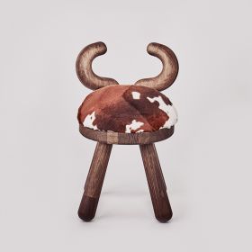 Cow Chair ist der neue Begleiter für Bambi und Sheep Stühle. Er hat eine markante Rückseite, die wie kleine Hörner geformt ist, und eine bequeme, mit Kuhfell (Kunstfell) gepolsterte Sitzfläche. Das Fellhocker Gestell wird aus dem feinen europäischen Eichenholz und die Füße aus dem Walnussholz hergestellt.