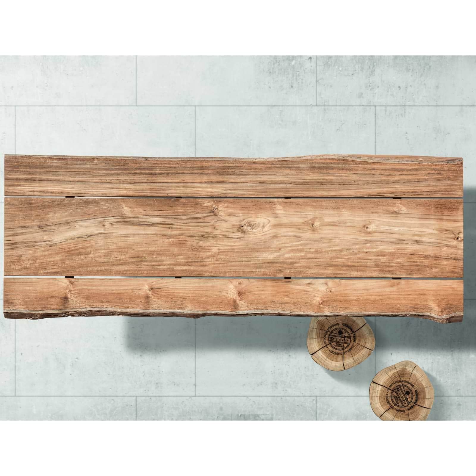 - 50 mm starke „raw“ Teakholzplatte (Natural oder Buffed)