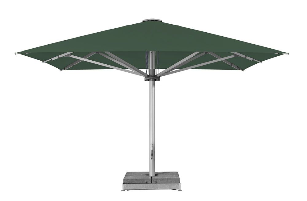 Gestell: 4-, 6- oder 8-teilig aus Aluminium, mit verdrehsicherem Mast (inkl. Verstärkungsrippen), mit gegenläufigem Öffnungsprinzip für komfortables Öffnen mit nur wenigen Kurbelumdrehungen.