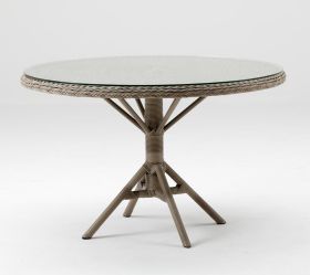 Esstisch aus Aluminium mit einem handgeflochtenen Polyrattan GestellEsstisch Grace von Sika Design hat einen platzsparenden Kreuzfuß, keine Ecken und keine Tischbeine. Wenn Ihre Gartenmöbel von Wärme und Romantik geprägt sind, werden Grace Tische zu einer schönen Ergänzung, sowohl im Innen- als auch im Außenbereich. Die Tische sind in der Farbe Antik braun oder Vintage white erhältlich. Eine Sicherheitsglasplatte für den Gartentisch ist leferbar.
