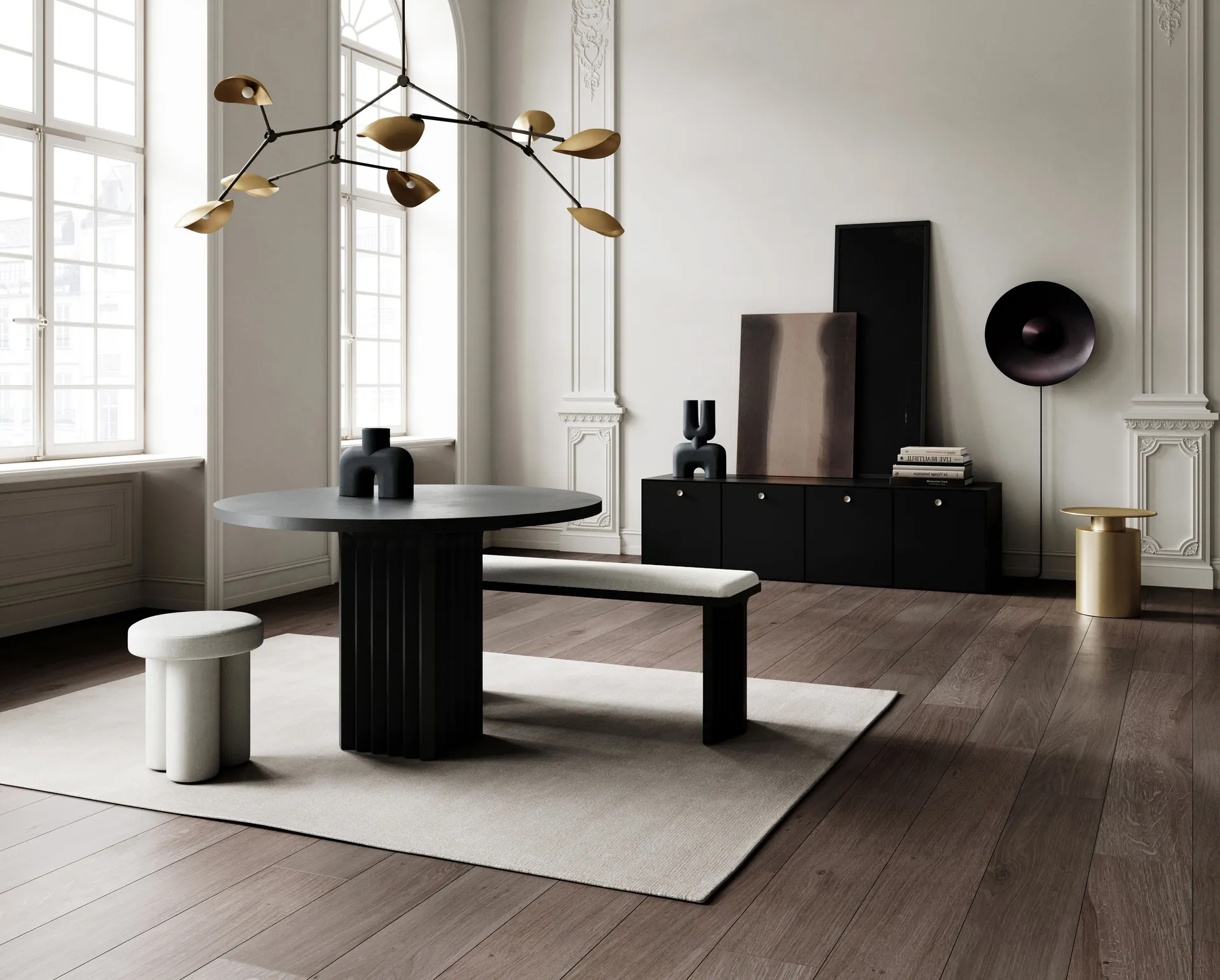 Die ARC Collection von 101 Copenhagen überträgt die architektonische Sprache des Art Deco in eine reduzierte Möbelserie: Tische, Bänke und Konsolen zeichnen sich durch markante Bögen, Treppenformen und Schichtungen aus, die Licht und Schatten im Raum lebendig erscheinen lassen – ein minimalistischer, trotzdem skulpturaler Ansatz für Ess- und Wohnbereiche.