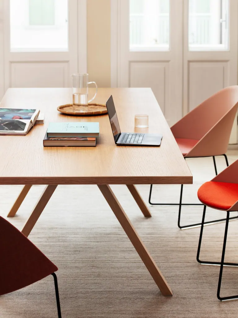 Gemeinsam arbeiten, kreativ planen, flexibel denken. Die Cross-Kollektion von Arper bringt Menschen an einen Tisch – mit modularen, großzügig bemessenen Tischsystemen, die sich als Konferenztisch, Arbeitsfläche oder Essplatz gleichermaßen bewähren.