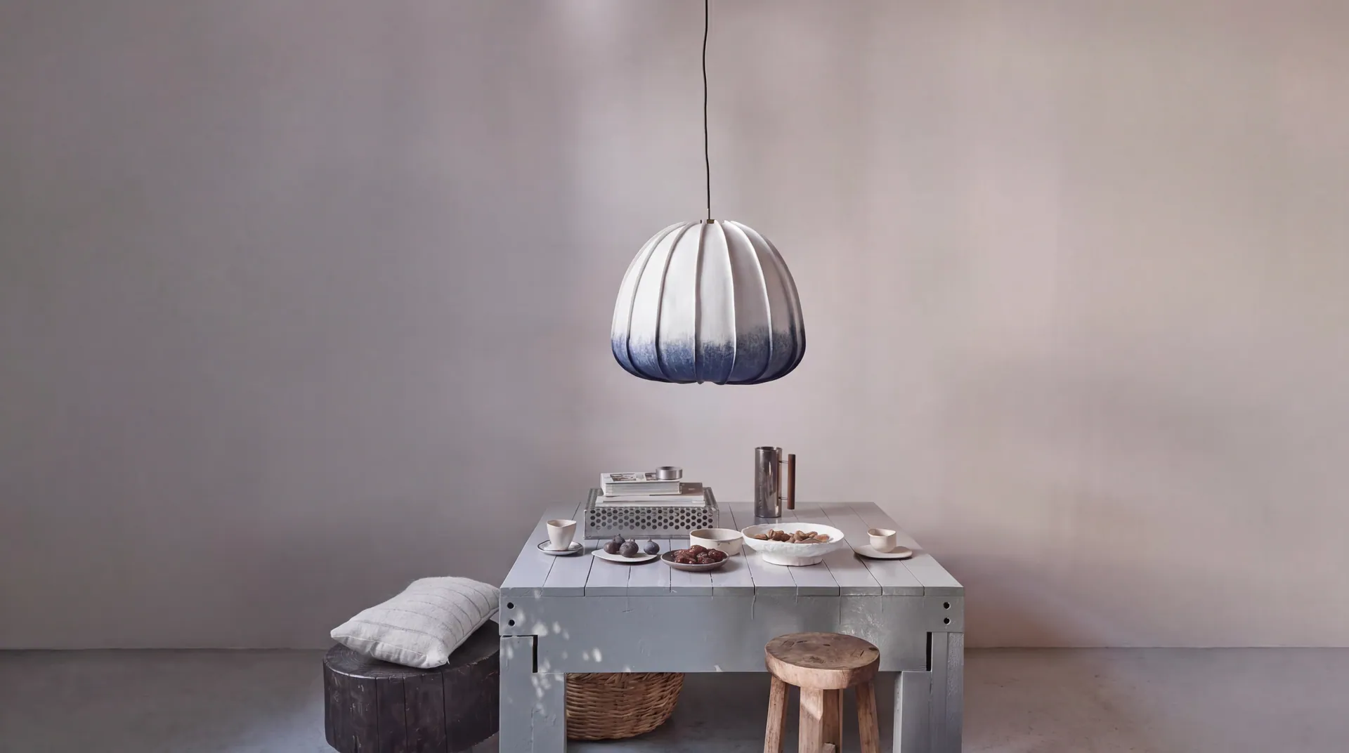 Die HOZUKI Kollektion besticht durch ihre Vielfalt an Ausführungen und den Einsatz natürlicher Materialien wie Papier. Sie erzeugt ein angenehmes, sanftes Licht und erinnert mit ihrer Form – einem umgedrehten Kelch oder Kürbis – an die Schönheit der Natur. Besonders in der Indigo-Variante wird die Leuchte zu einem stilvollen Hingucker in jedem Raum.