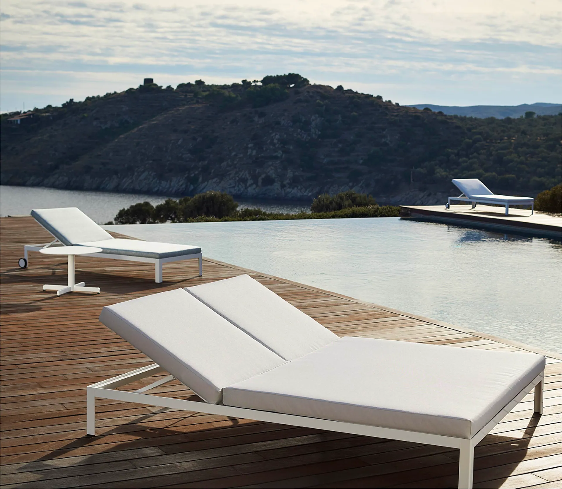Die Lounge-Kollektion Nak von Bivaq besteht aus Sofas, Loungesesseln, Kaffeetischen und Liegestühlen. Bei der Herstellung dieser Kollektion wird ein robustes, mit Pulver beschichtetes Aluminiumgestell verwendet. Nak wurde mit Materialien entwickelt, die im Freien gelagert werden können - sowohl das Gestell als auch die Kissen. Nak ist in zwei Sitzhöhen, hoch und niedrig, und zwei Breiten, L und XL erhältlich. Die Kissen sind aus wasserdichtem Vinytex- oder Acryl-Stoff gefertigt. Nak ist vielseitig - die Optik und der Zweck können sich durch einfaches Hinzufügen oder Entfernen von Kissen aus den Rücken-oder Armlehnen verändern.