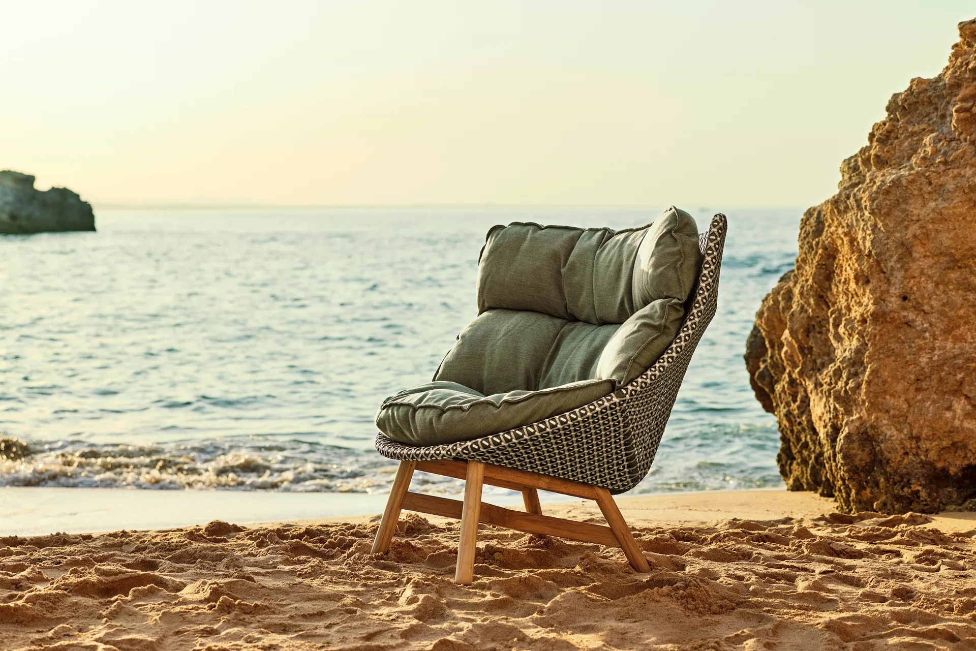 Sessel und Hocker: Stilvoller Komfort für Ihr Outdoor-Paradies. Entdecken Sie den zeitlosen Komfort von DEDON Sesseln, allen voran dem beliebten Mbrace. Ob TIBBO, SEASHELL NUO oder ROII – die Sessel-Kollektionen vereinen Design und Gemütlichkeit für entspannte Stunden unter freiem Himmel.