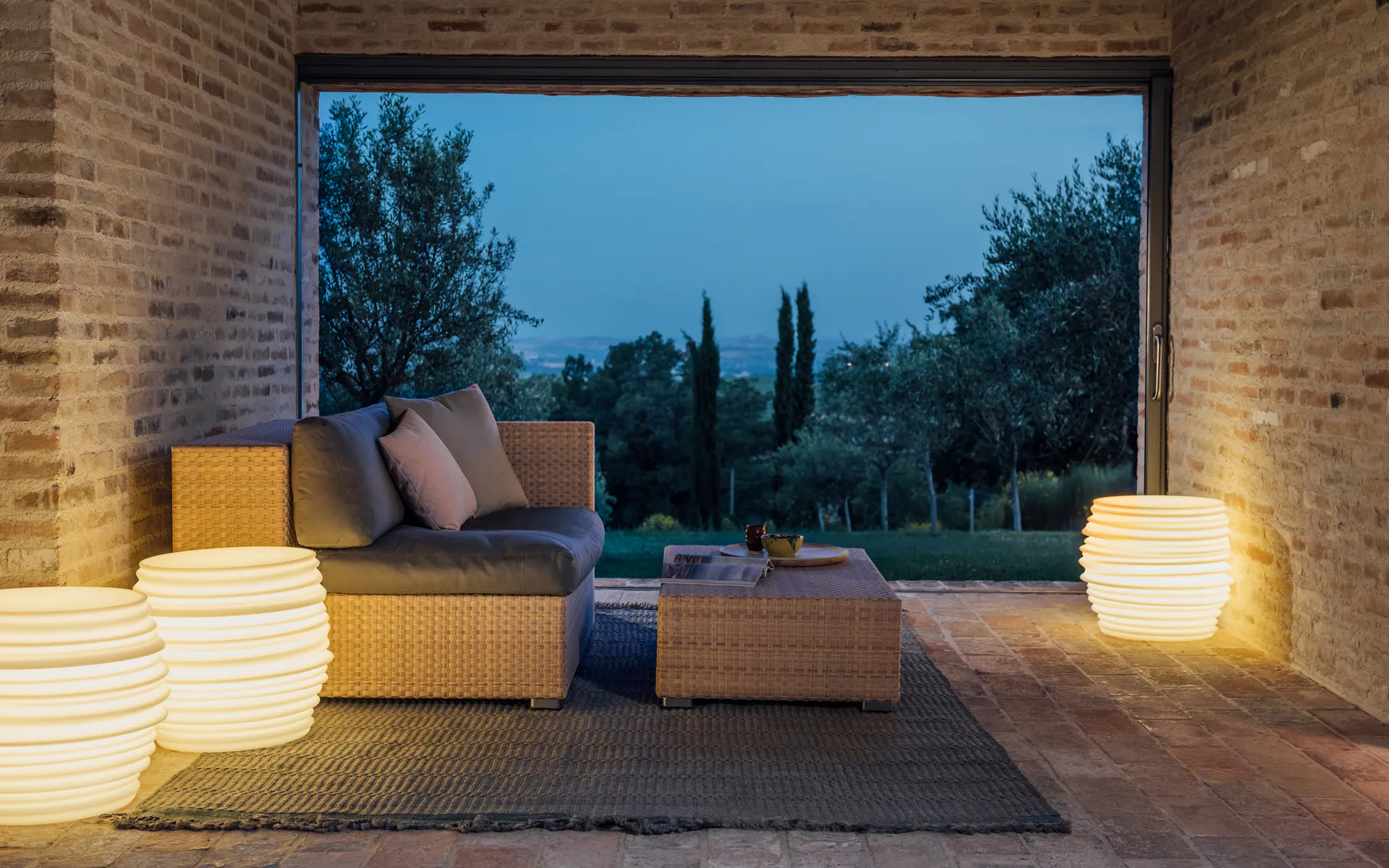 Für die erste Accessoires-Kollektion von DEDON hat sich das Designduo Harry & Camila von einer Jahrhunderte alten architektonischen Phantasie inspirieren lassen, um eine zeitlos moderne Form für unsere Vasen zu finden. Gefertigt aus einer speziellen Keramik, verfügen sie über eine strukturierte Oberfläche aus asymmetrischen Formen, die am Computer generiert werden. Stellt man sie auf den Kopf, erinnern sie an den Turm zu Babel. Erhältlich sind die Vasen in drei unterschiedlichen Größen und Farben, sie sind ein so zweckmäßiges wie einmaliges Accessoire – typisch DEDON eben