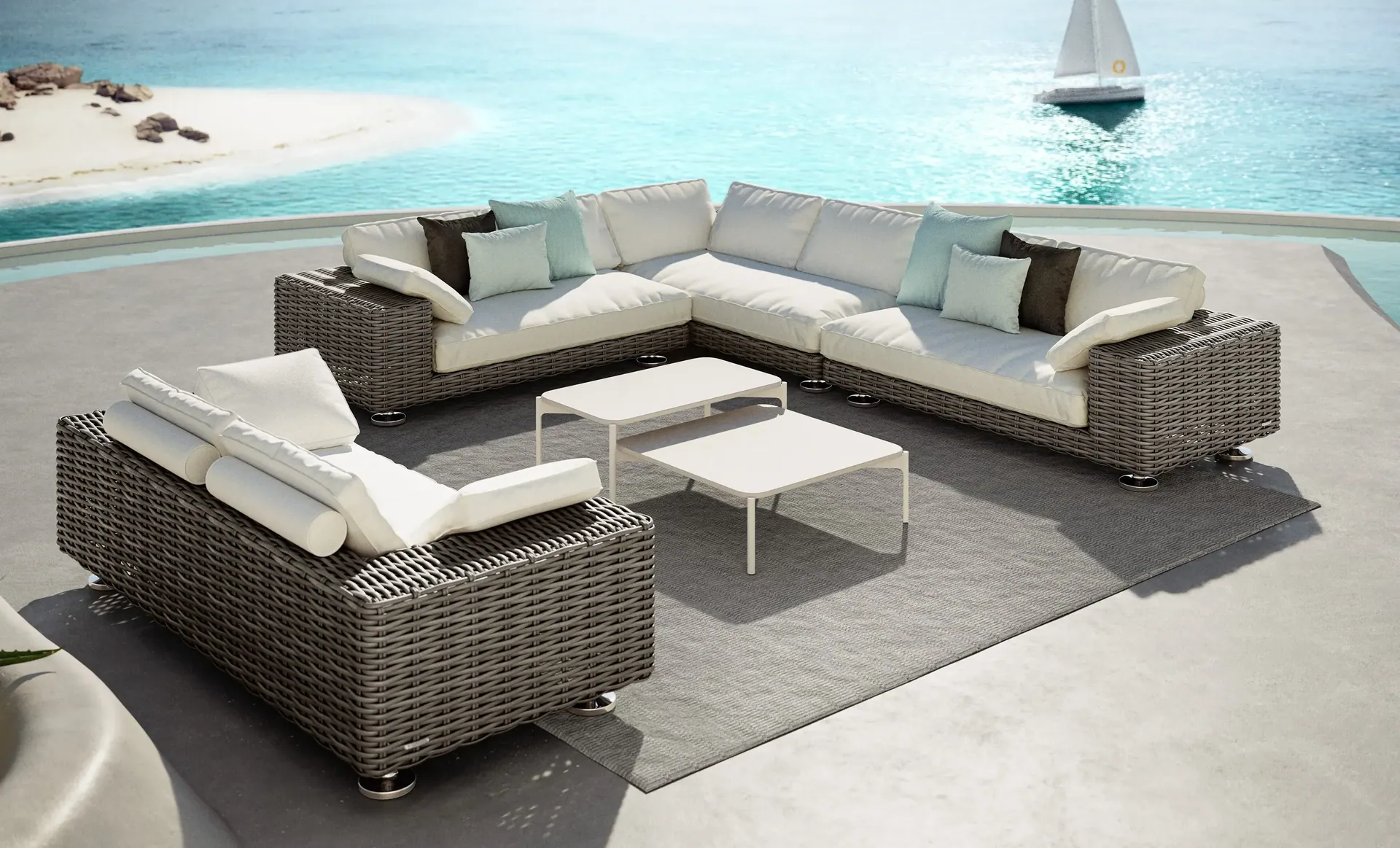 Die Kollektion PAROS von dem Designer Jean-Marie Massaud besteht aus verschiedenen Modulelementen bei denen die DEDON-Faser auf einen pulverbeschichteten Aluminiumrahmen geflochten sind. Die luxeriöse Präsenz der Propotionen und der Komfort des geflochtenen, modularen Loungesofas verwiesen auf die DEDON Wurzeln. Die raffinierten und gleichzeitig zeitlosen Module verschmelzen optisch mit ihrer Umgebung.