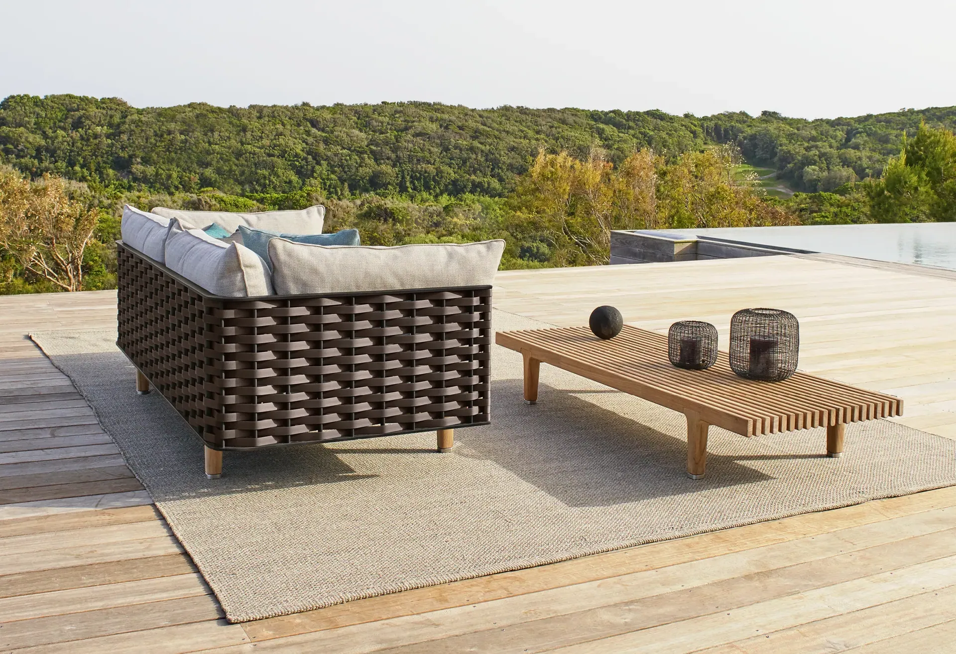 Die luxuriöse Lounge-Kollektion Sealine von Jean-Marie Masaud gehört zu den Kollektions-Neuheiten 2020 von Dedon. Die Produkte werden vereint durch eine äußerst elegante Note vollendeter Zeitlosigkeit. Selbstverständlich werden bei Dedon Sealine nur hochwertigste Materialien verarbeitet - dies gehört zu den Kundenversprechen dieser Top-Outdoor-Marke. Die Teakholzrahmen sind handgemacht, bei den bequemen Polstern und Rückenlehnen haben Sie die Wahl zwischen Seil im maritimen Stil oder extra ausladender, qualitativ hochwertigster DEDON-Faser. Mit diesen robusten und langlebigen Optionen ausgestattet fügt sich Dedon Sealine adrett in jede Wetterbedingung und jeden Platz der Welt ein. SEALINE ist im Garten eines afrikanischen Gästehauses ebenso perfekt aufgehoben wie an Board einer luxuriösen Superyacht in den mediterranen Meeren. Ob als Einzelkollektion oder im Ensemble mit anderen DEDON-Serien von Jean-Marie Massaud, wie der beliebten und mit Designpreisen ausgezeichneten Kollektion DEDON SeaX : SEALINE schafft immer und überall im Handumdrehen eine edle Wohlfühl-Atmosphäre. Überzeugen Sie sich selbst und entdecken Sie auf Villa-Schmidt.de die DEDON SEALINE Produkte!