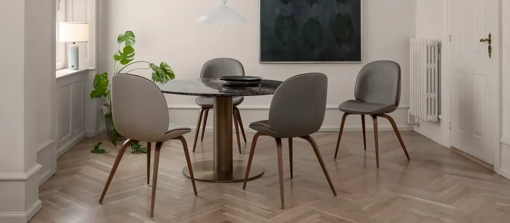 Dieser Tisch, entworfen von Komplot Design, verkörpert die Exzellenz der dänischen Handwerkskunst in seiner reinsten Form. Mit seinen eleganten Rundungen und natürlichen Materialien ist der GUBI Dining Table die ideale Ergänzung für jeden Essbereich. Komplot Design wurde 1987 von den dänischen Kreativen Poul Christiansen und Boris Berlin gegründet und ist seitdem in den Bereichen Möbel-, Produkt- und Grafikdesign tätig. Ihre innovativen Designs wurden mehrfach ausgezeichnet und zeichnen sich durch eine multidisziplinäre Herangehensweise aus.