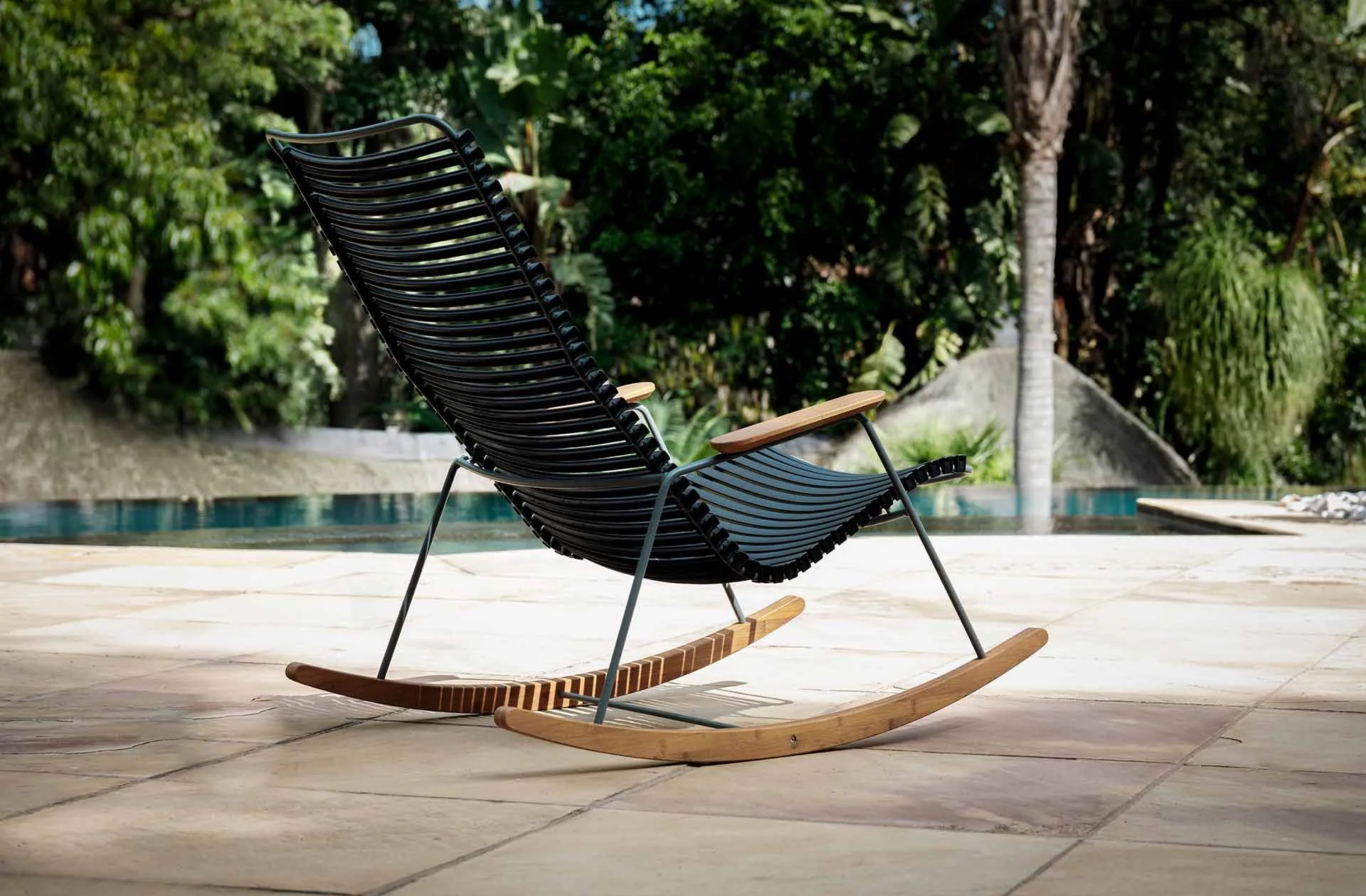Ein Klick, und alles sitzt. Die Click-Kollektion von Houe verdankt ihren Namen dem charakteristischen Geräusch, mit dem sich die Kunststoff-Lamellen ins Stahlgestell fügen – simpel, clever, typisch dänisch. Stapelbar, wetterfest und in einer Palette nordischer Farben erhältlich, bringen Click-Stühle unkomplizierte Eleganz auf jede Terrasse. Design, das Spaß macht und funktioniert.