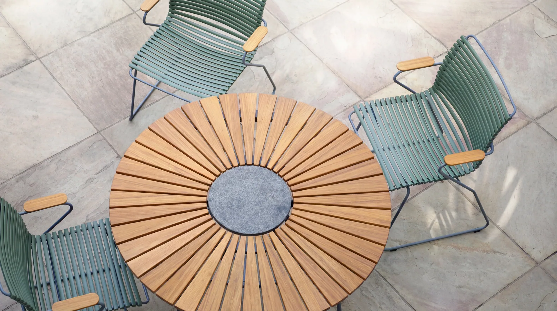 Die Outdoor Gartentische Houe Circle, entworfen von dem Designer Henrik Pedersen, lassen sich vielfältig mit Click Gartenstühlen kombinieren und bilden zusammen eine hochwertige Essgruppe auf Ihrer Terrasse oder im Garten. Das leichte, pulverbeschichtete Stahlrohrgestell der Circle Kollektion eignet sich hervorragend für den Gebrauch im Outdoor-Bereich und verspricht eine lange Lebensdauer. Die Tischplatten bestehen aus HPL oder gepressten Bambusholzlatten, die besonders pflegeleicht und resistent gegen Feuchtigkeit sind. In der Mitte des Tisches ist eine praktische Granitsteinplatte zum Abstellen von heißen Töpfen und Pfannen eingebaut. Die originelle und komfortable Circle Gartenmöbel schafft eine leichte, lockere und dennoch hochwertige Atmosphäre. Die klare Formen faszinieren durch eine organische, hochwertige Gestaltung. Der hervorragende Sitzkomfort macht die Circle Essgruppe schnell zum Liebling in Ihrem Garten.