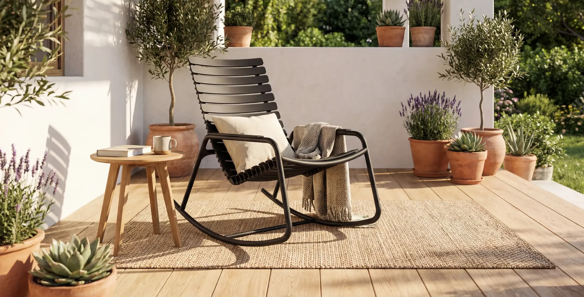 Den Namen ReClips trägt der Gartenstuhl von Houe aufgrund seiner Funktionalität und der verwendeten Materialien. Die Streben des Stuhls sind zum einen austauschbar - können also "abgeklippt" werden und zum anderen sind sie aus recyceltem Haushaltsplastik hergestellt. Die ergonomische Konstruktion des Houe Clips Gartenstuhls mit Stahlgestell und Kunststofflamellen ist robust und wetterresistent ausgearbeitet. Der originelle und komfortable Clips Armlehnstuhl schafft eine leichte, lockere und dennoch hochwertige Atmosphäre. Die fließenden Übergänge von Sitzschale und Fußgestell faszinieren durch eine organische, hochwertige Gestaltung. Der hervorragende Sitzkomfort macht den Essstuhl schnell zum Liebling für den Essplatz. Verschiedenste Tische vervollständigen diese originelle Outdoor Kollektion.
