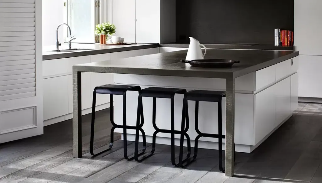 Das charakteristische Merkmal der Continuum Kollektion ist das Gestell des Barhockers, das sich aus einem gebogenen Metallprofil mit rechteckigem Querschnitt formt. Diese einzigartige Konstruktion schafft eine kontinuierliche Linie, die das Auge fesselt und gleichzeitig eine außergewöhnliche Stabilität und Standfestigkeit gewährleistet. Die Schlichtheit dieses Barhockers liegt in seinem frischen und minimalistischen Stil, der sich nahtlos in eine Vielzahl von Einrichtungsstilen einfügt. Seine klaren Linien und seine zurückhaltende Eleganz machen ihn zu einer perfekten Ergänzung für moderne Küchen, Bars oder Restaurants.