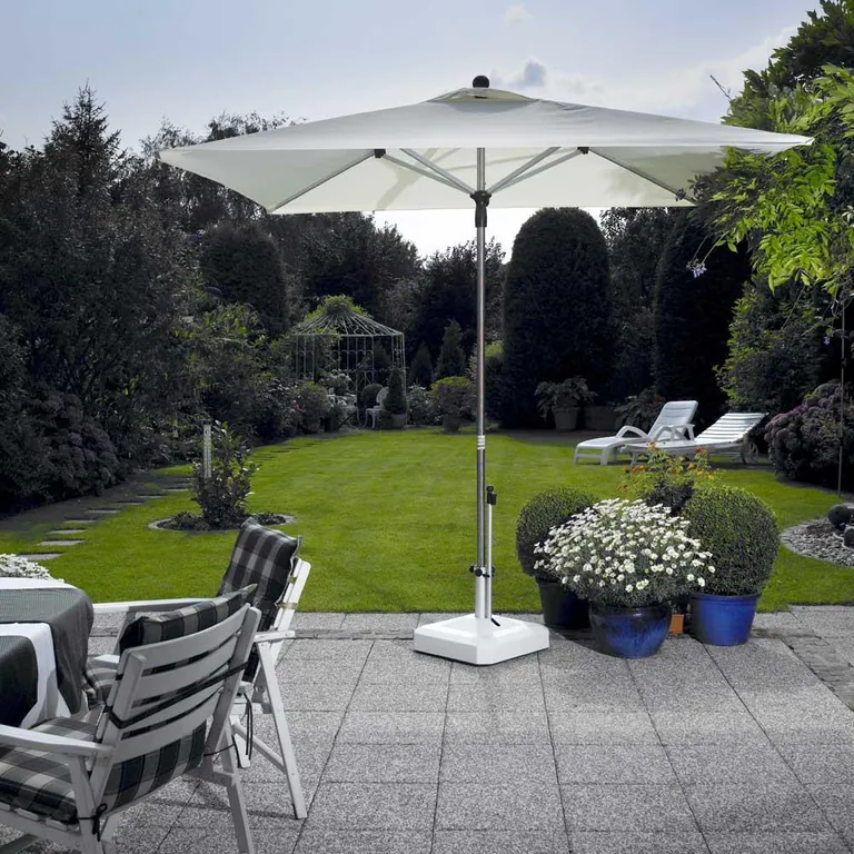 Der LiRo besteht aus hochwertigen Materialien wie Aluminium und Edelstahl sowie verzinkten und anschließend pulverbeschichteten Stahlteilen. Die Hauben bestehen aus schlagfestem, UV- und witterungsbeständigem Spezialkunststoff, d. h. auch nach Jahren verblassen die Farben nicht. Der Sonnenschirmständer wird durch 3 Edelstahlschrauben mit Winkelplatten gespannt. Die Winkelplatten haben die Aufgabe, den Schirmmast zu schützen. Im Schirmrohr befindet sich eine automatische Entwässerung, dadurch wird ein Aufquellen des Holzschirms und Frostschäden vermieden.