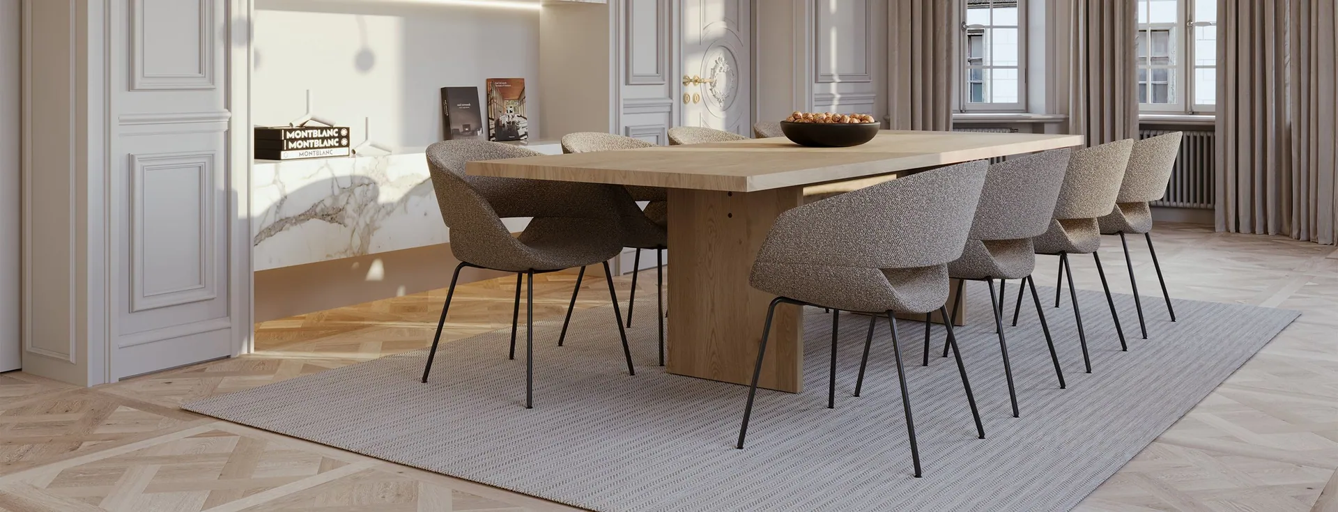 FLANK von Studio by Mobimex erklärt das Wesentliche auf eigenwillige, klare Weise: kraftvoll kombinierte Körper in gestreckten Proportionen schaffen eine starke Präsenz und bilden eine ruhige, architektonische Struktur im Raum. Konzentriert auf reine Materialität und ausgewogene Proportionen, passt FLANK sowohl in private Wohnbereiche als auch ins Office – und eignet sich mit seinen zwei Seitenelementen sogar als Konferenztisch mit integriertem Kabelmanagement