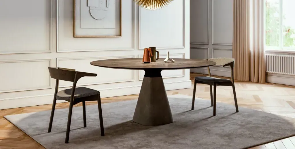 Tische mit Haltung. Die Tischkollektionen von Mobimex verbinden Schweizer Präzision mit einer klaren, architektonischen Designsprache – gefertigt aus Massivholz und oft ergänzt durch ausdrucksstarke Materialien wie Stahl, Beton oder Glas.