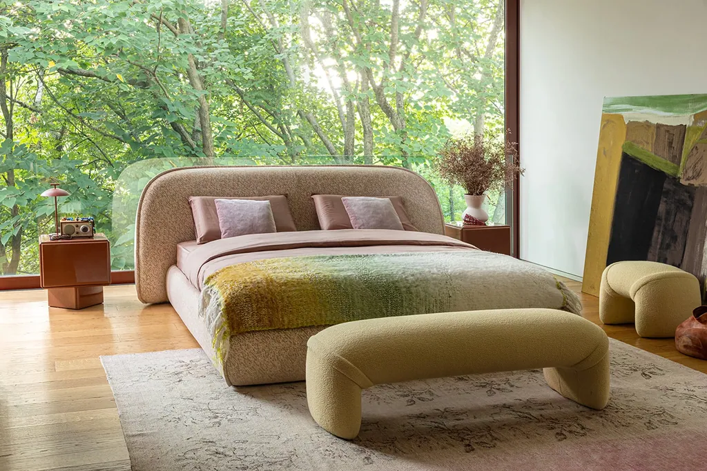 Mit Sedona erweitert Moroso den Schlafbereich zu einem kleinen Ensemble: Die Kollektion besteht aus Bett, Bank und Pouf und ist von der Landschaft rund um Sedona/Arizona inspiriert (Canyons, Wälder, rote Felsen).