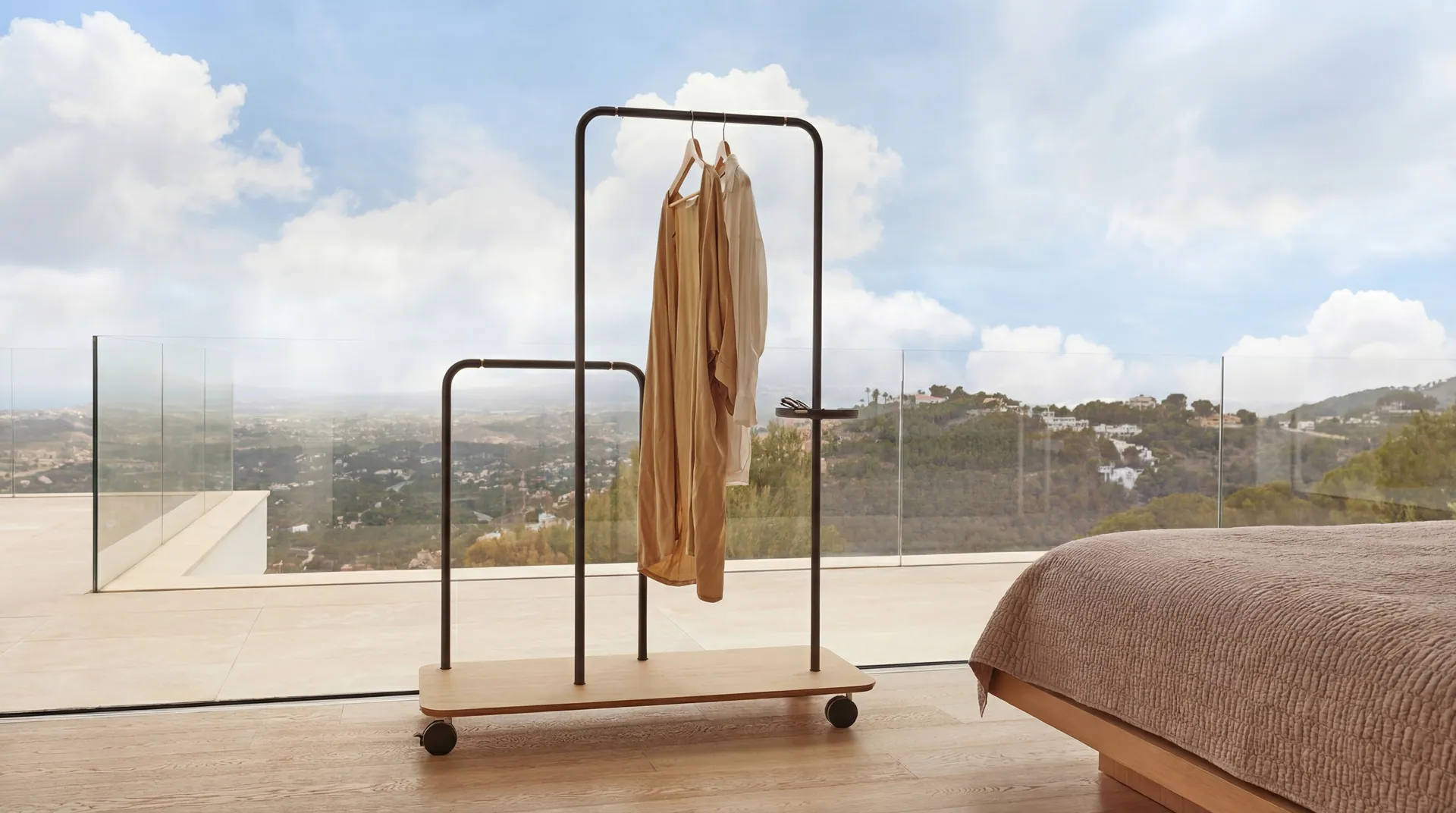 Die Platel Kollektion von Punt zeigt den Platel Kleiderständer, entworfen vom Note Design Studio und kombiniert edles Metall mit warmem Massivholz und ist dank seiner vier Räder ein flexibler Begleiter in jedem Raum. Ob zur stilvollen Präsentation von Kleidung oder Blumentöpfen, Platel schafft es, Funktion und Ästhetik mühelos miteinander zu verbinden.