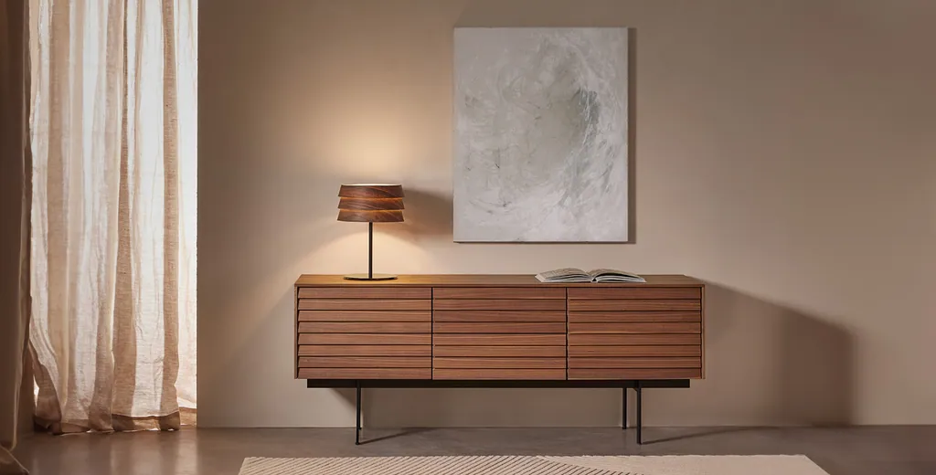 Ob Steh- und Tischlampen oder die vielseitigen Sideboards. Jedes Stück der Sussex Kollektion von Punt zeichnet sich durch hochwertige Materialien und ein raffiniertes Design aus. Die Lampen mit Oberflächen aus Eichen- oder Walnussfurnier schaffen eine warme Atmosphäre und ergänzen die Sideboards der Kollektion perfekt. Die Sussex Sideboards beeindrucken mit edlen Holzfronten, Türen, die sich bis zu 94° öffnen lassen, und stabilen Sockeln aus thermolackiertem Stahl mit höhenverstellbaren Füßen.
