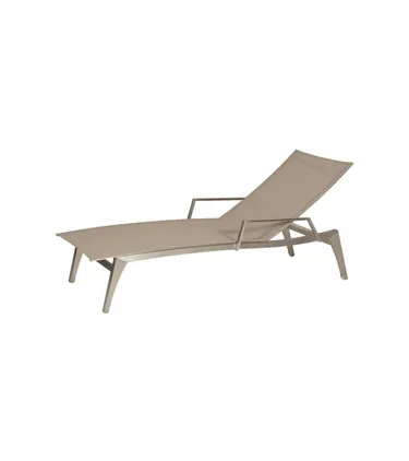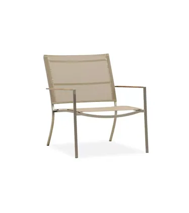 Die Kollektion Muse von Royal Mirage, bestehend aus einem Armlehnstuhl, Sonnenliege und 5-fach verstellbarem Hochlehner. Die Gestelle sind aus hochwertigem Edelstahl gefertigt - kombiniert mit Batyline®-Canatex Synthetikgewebe und Armlehnen aus Teakholz bringen Sie die Gartenmöbel dieser Kollektion stilvoll in den Sommer.