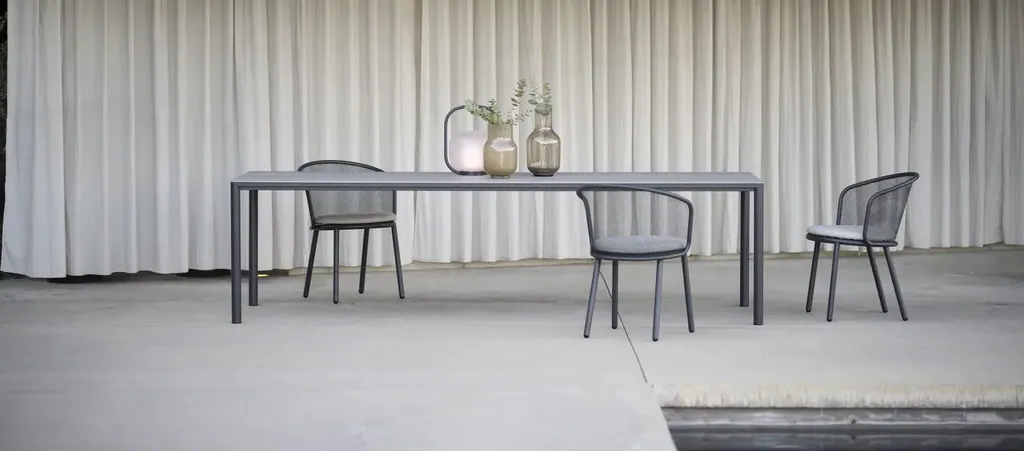 Baza Kollektion Todus – hochwertige Gartenmöbel – made in Europe Die Alca Esstische bestechen durch das minimalistische Aussehen, und subtile, elegante Details. Durch seine Schlichtheit fügt er sich perfekt in jede Umgebung ein und kann gut mit jedem Gartenstuhl kombiniert werden. Der Alca-Tisch ist in einer Vielzahl von Abmessungen erhältlich, um eine noch größere Vielseitigkeit bei der Verwendung zu bieten. Er besteht aus einem pulverbeschichteten Edelstahlrahmen und einer Keramik- oder HPL-Tischplatte.