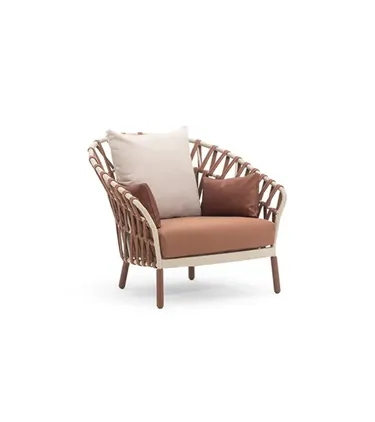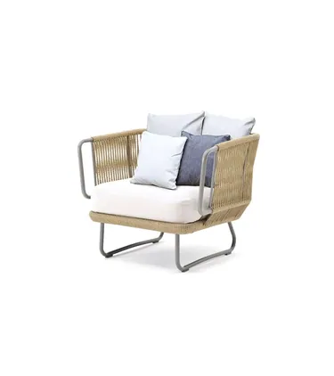 Varaschin Babylon Loungemöbel ist eine moderne Gartenmöbel Kollektion mit einem pulverbeschichtetem Aluminiumgestell, die für den Einsatz im Freien konzipiert ist. Die robuste, mit Kunstfaserseil dekorierte Babylon Loungegruppe eignet sich ideal um mit Stil und Charme Ihr Garten oder Ihre Terrasse zu schmücken. Die Kombination des Seilgeflechtes mit den bunten Stoffen der Polsterung strahlt Wärme und Originalität aus. Loungetische sind mit Marmor- bzw. HPL Platten ausgestattet. Babylon - eine Loungegruppe für alle Jahreszeiten. Seit 1969 prägt Varaschin, ein venezianischer Marktführer aus der Outdoor Gartenmöbel Branche, die Bindung zwischen traditioneller Handwerkskunst und modernen ästhetischen Trends. Neben der Produktion von Outdoor-Kollektionen führt Varaschin Verträge aus, die von den angesehensten Namen in der italienischen und internationalen Design-Szene unterzeichnet werden. Jede Gartenmöbel Produktlinie hat ihre eigene Geschichte und Identität. Viel Liebe zum Detail, Originalität und Ästhetik sind die Kernmerkmale der Varaschin Kollektionen. In einem ausgeglichenen Spiel zwischen Leichtigkeit und Komfort entstehen einzigartige Gartenmöbel, die den Innenraum erweitern und mit der Natur verbinden.