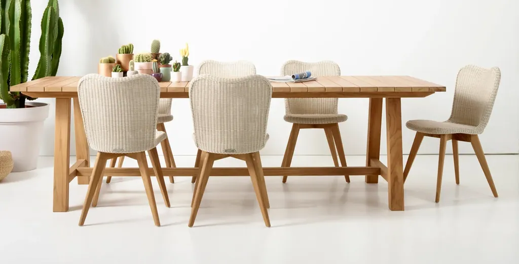 Die Gartenmöbel-Kollektion Lena mit Stahlgestell kombiniert in einem zeitgemäßen Materialmix feines Geflecht, robustes Teakholz und Metall. Der Barhocker Lena mit Teakholzbeinen und charmanten Kurven wird Ihre Terrasse zweifellos schmücken. Verfügbare Geflechtfarben: Schwarz, Mocca und Old Lace. 1992 entschied sich das Belgische Unternehmen Vincent Sheppard den Faden dieser außerordentlichen Tradition und Handwerkskunst wiederaufzunehmen. Vincent Sheppard kreierte eine geniale Kollektion, die die Klassiker mit eleganter Innovation verband und in zeitgemäße Möbeln verwandelte. Es war ein Riesenerfolg. Das Unternehmen begnügte sich nicht mit halber Arbeit: Neben der Steuerung des Designs wollte es den gesamten Produktionsprozess kontrollieren. Vincent Sheppard gründete ein eigenes Werk in Cirebon, Indonesien, und wuchs somit zu einem der wenigen vertikal integrierten Lloyd Loom Hersteller der Welt.