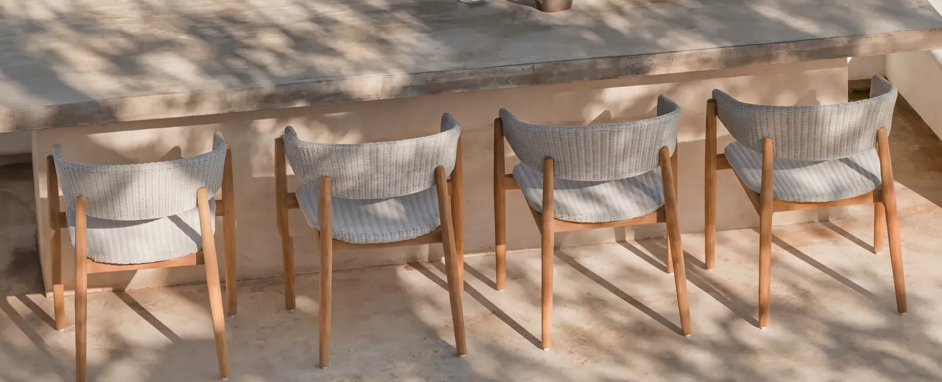 Mona ist ein atemberaubender Gartenstuhl mit einer weichen, geschwungenen Rückenlehne und einem schlanken Teakholzgestell. 1992 entschied sich das Belgische Unternehmen Vincent Sheppard den Faden dieser außerordentlichen Tradition und Handwerkskunst wiederaufzunehmen. Vincent Sheppard kreierte eine geniale Kollektion, die die Klassiker mit eleganter Innovation verband und in zeitgemäße Möbeln verwandelte. Es war ein Riesenerfolg. Das Unternehmen begnügte sich nicht mit halber Arbeit: Neben der Steuerung des Designs wollte es den gesamten Produktionsprozess kontrollieren. Vincent Sheppard gründete ein eigenes Werk in Cirebon, Indonesien, und wuchs somit zu einem der wenigen vertikal integrierten Lloyd Loom Hersteller der Welt.