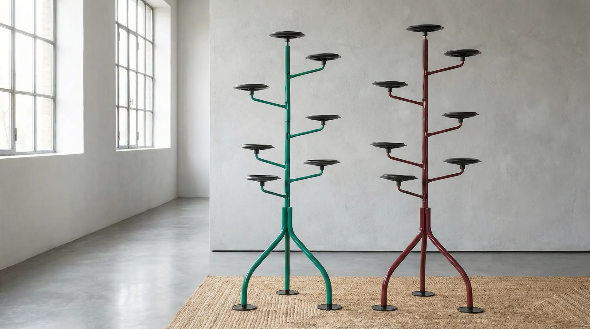 Es war im Jahr 1983, als Achille Castiglioni eine dezente Präsenz entwarf – dynamisch in ihrer Zusammensetzung, flexibel in ihrem insgesamt gegliederten Design –, die dazu gedacht war, Zimmerpflanzen in ihren eigenen Töpfen aufzunehmen. Diese Töpfe werden von kleinen runden Platten getragen (gleichsam wie fürsorgliche Hände), die gleichmäßig entlang der gesamten Höhe der Struktur angeordnet sind. Horizontal können die einzelnen Elemente jeweils um 120 Grad gedreht werden, um Pflanzen unterschiedlicher Größen besser dem Tageslicht auszusetzen, auf diesem kleinen Innen-"vertikalen Holz". Albero ist mit anderen Worten die Erfindung einer Typologie, die in der jüngsten Geschichte einzigartig ist und die nur in einem vielseitigen Katalog wie dem von Zanotta Platz finden, begrüßen und fördern konnte. Es gibt wahrscheinlich nur ein Vorläufer: die kleinen Blumenkübelhalter, die Pierre Chareau zusammen mit der Unterstützung des Schmieds Dalbet für die legendäre Maison de Verre "Maschine zum Leben" realisierte.