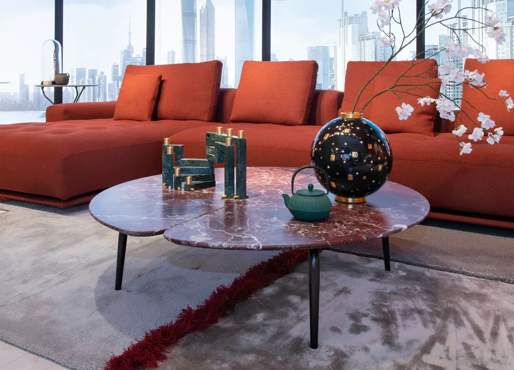 Zwei Couchtische, inspiriert von zwei Konzepten und zwei natürlichen Elementen: Grafik und Symmetrie, Marmor und tropische Schmetterlinge. Durch die Kombination dieser scheinbar widersprüchlichen Elemente - die Leichtigkeit eines Flügelschlags und die Solidität des Steins - haben wir eine zeitgemäße Ergänzung zur Einrichtung geschaffen: eine solide Tischplatte aus Naturmarmor, getragen von einer schlanken, organischen Stahlstruktur.