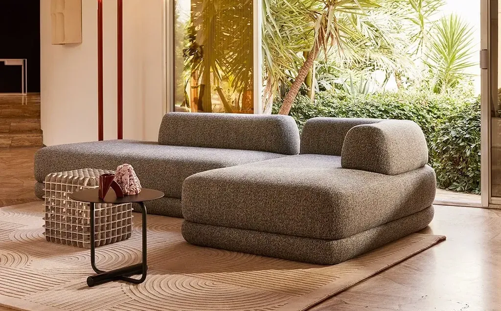 Inspiriert von der schlichten Einfachheit des traditionellen japanischen Futons erinnert dieses Sofa an das Erscheinungsbild einer dick gepolsterten Matratze, die auf einer gepolsterten Holzbasis ruht. Das raffinierte, gesteppte Motiv begrenzt das großzügige Sitzkissen, verziert durch die handgearbeiteten Details der Nuancen der Polsterung. Das Design zeichnet sich durch die dynamische Abwechslung von verschiedenen Dicken und Höhen aus, die eine städtische Skyline imitieren, eine architektonische Komposition, die aus harmonisch kontrastierenden Materialien, Oberflächen und Volumen geschaffen ist.