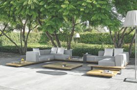 Point 1920 Pal - modulierbares Lounge-System aus massivem Teakholz. Diese Gartenmöbel-Kollektion bietet nahezu endlose Möglichkeiten für die individuelle Zusammensetzung einer modernen und bequemen Loungegruppe. Die auf einer festen Teakholzplattform platzierten, gepolsterten Loungemodule bieten viel Platz zum Sitzen und bilden eine erholsame Atmosphäre im Freien. Alle Pal Produkte sind mit einem hochwertigen pulverbeschichteten Aluminium Untergestell sowie wetterresistentem Polster hergestellt. Die verwendete Materialien sind besonders widerstandsfähig gegenüber Hitze, Regen, Eis und Schnee und UV-Strahlung. Mit über 85 Jahren Erfahrung in der Branche gehört Point 1920 zu den Pionieren in der Herstellung, Vermarktung und dem Export hochwertiger Flechtmöbel. Traditionelles Flechthandwerk und moderne Materialien sorgen für einzigartige Gartenmöbel, die durch ihre Exklusivität und Funktionalität begeistern.