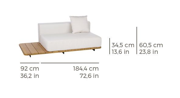 Point 1920 Pal Gartensofa Modul links 184 cm, Doppelsitz mit Ablagefläche