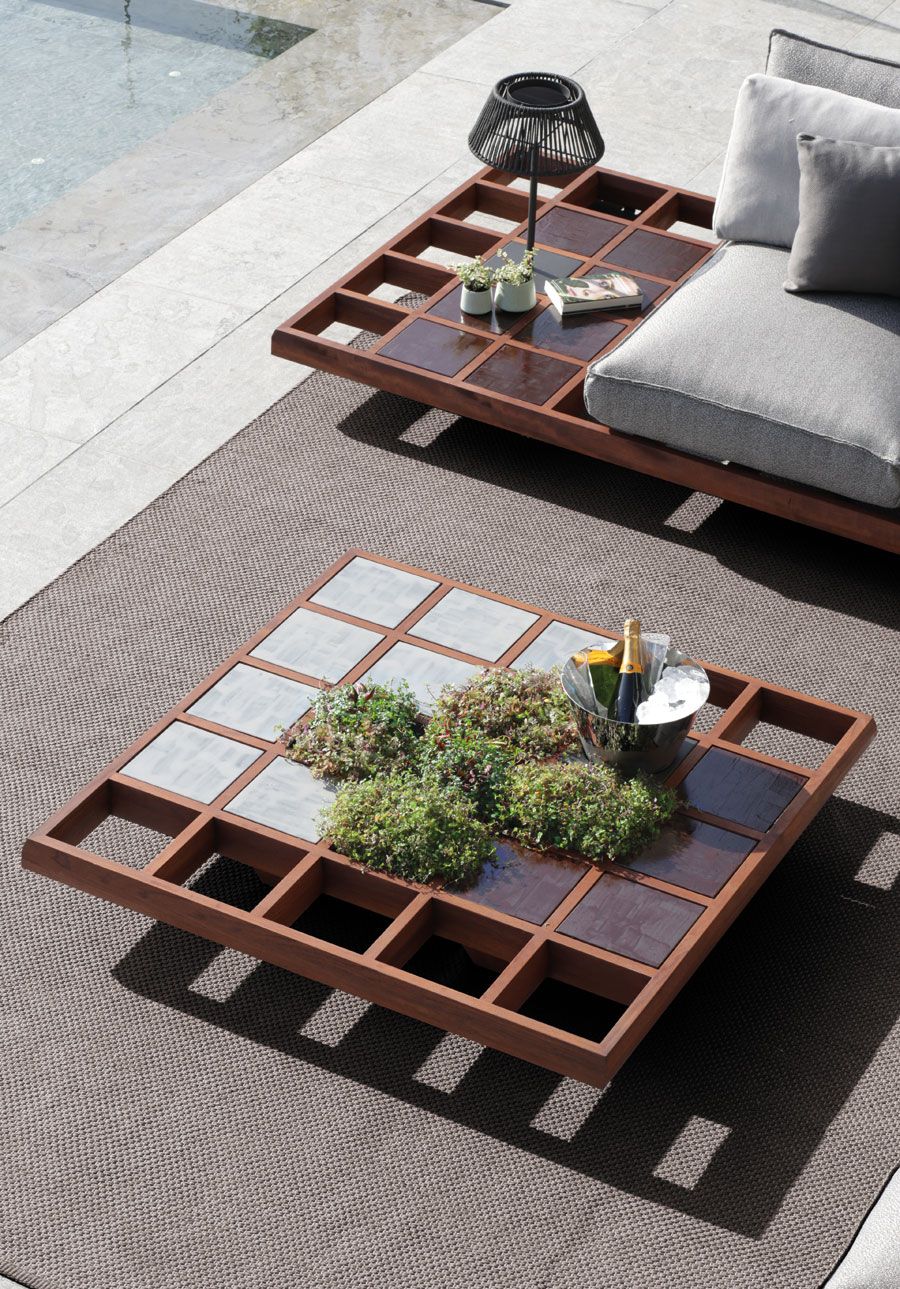 Royal Botania Loungemodule Mozaix mit Mahagoniuntergestell.