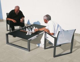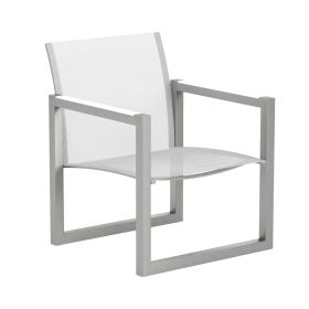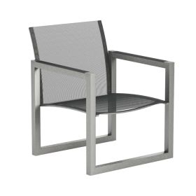 Sessel Ninix, mit Batyline-Bespannung erhältlich in verschiedenen Farben. Dieser Sessel ist auch mit elektropoliertem Gestell erhältlich und eignet sich dadurch hervorragend für den Einsatz im maritimen Bereich.