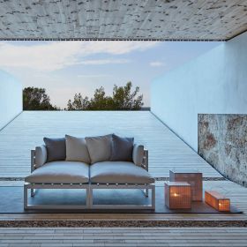 GANDIA BLASCO präsentiert sein neues Outdoor-Möbelprogramm SALER SOFT, die Fortsetzung und Erweiterung der 2008 von Jose A. Gandía-Blasco entworfenen Kult-Kollektion SALER; beide Kollektionen sind im Katalog GANDIA BLASCO enthalten. Der Unterschied besteht in einem noch größeren Komfort von SALER SOFT dank der Weiterentwicklung des Designs der Kissen und Polsterauflagen sowie einem wohnlich warmen Charakter durch die Ausführung in Polyethilene. Die mit Polyurethan-Schaumstoff gefüllten und mit resistentem Segeltuch bezogenen Polster und Kissen sind noch weicher und tragen so zu höherem Komfort bei. Zum Anderen wird den geraden Linien des eloxierten oder thermolackierten Aluminiums durch die gebogenen Formen der neuen Polsterung etwas von ihrer Strenge genommen, was der Kollektion insgesamt ein ungezwungenes, legeres Aussehen verleiht.Die Palette neutraler Farben der Aluminiumstruktur, die in Weiß, Grau, Sand, Bronze, Anthrazit und Schwarz erhältlich ist, wird durch widerstandsfähiges Polyethilene ergänzt, ein Naturmaterial, das sich allen Wetterverhältnissen anpasst. Die satten Brauntöne des Holzes werden von den Sonnenstrahlen in goldiges Licht getaucht und bilden so einen attraktiven Kontrast zur Strenge der Aluminiumstruktur, auf der die Holzpaneele angebracht sind.
