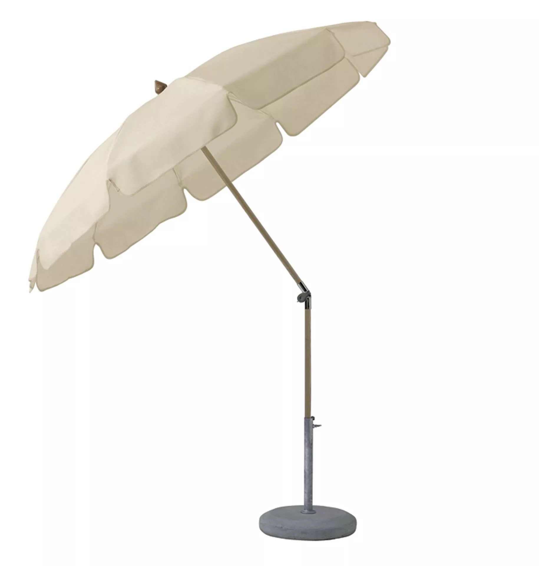 Mit einem Durchmesser von 200 bis 220 cm ist Alexo auch in begrenzten Räumlichkeiten die optimale Wahl. Die robusten Schirmstreben, der erstklassige Eschenholzstock und das solide Zahnkranzgelenk aus verchromtem Zinkdruckguss gewährleisten eine langfristige und zuverlässige Nutzung. Selbstverständlich sind auch die passenden Befestigungsmöglichkeiten und der ansprechende Volant erhältlich, um das Gesamtbild perfekt abzurunden.