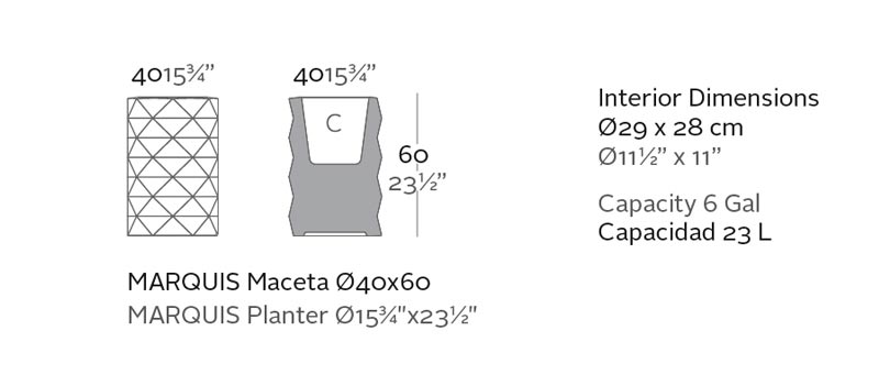Die Marquis Pflanzgefäße werden im Rotationsgussverfahren aus Polyethylen hergestellt, was sie nicht nur besonders robust, sondern auch zu 100 Prozent recycelbar macht. Diese Leuchten setzen in jeder Umgebung markante Akzente. Die umfangreiche Vondom Marquis Kollektion verbindet innovatives Design mit Komfort und hoher Qualität, sowohl im Innen- als auch im Außenbereich.