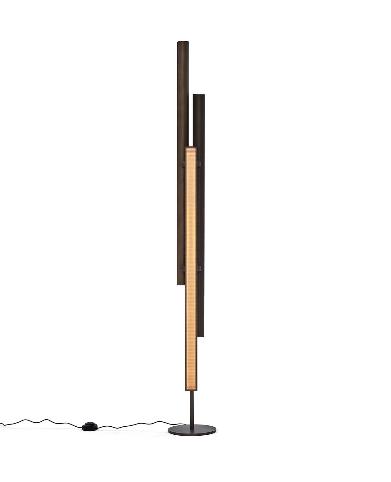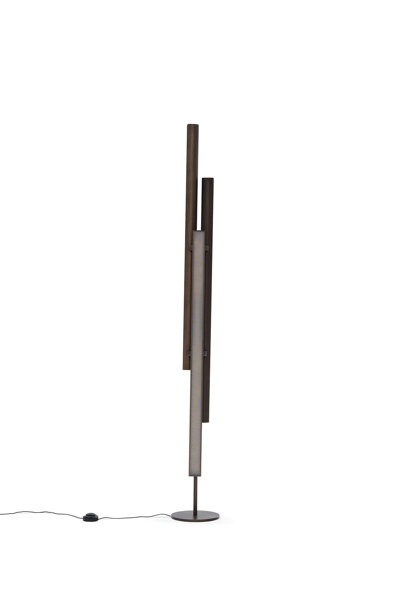 Die satinierte Oberfläche in Bronze umhüllt das fließgepresste Aluminium und verleiht der Leuchte eine warme, luxuriöse Ausstrahlung. Die vertikal angeordneten, bewusst versetzten Lichtelemente erzeugen ein faszinierendes Lichtbild mit architektonischer Wirkung – puristisch, glänzend und außergewöhnlich.