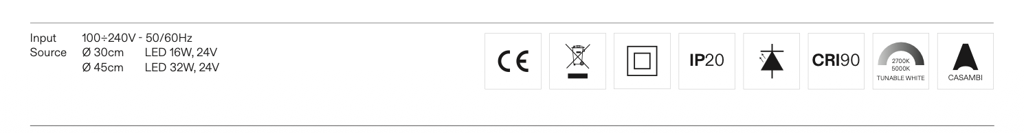 - Tisch- und Bodenversion: Netzteil in Produkt eingesetzt (Output/Ausgang: 24 V). Stromkabel mit integrierter Ein/Aus-Steuerung. Dimmen NUR über die CASAMBI-App, die kostenlos von Google Play und dem App Store heruntergeladen werden kann.