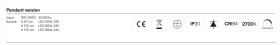 - Hänge-Version: Netzteil in Deckenrosette eingesetzt (Output/Ausgang: 24 V). Deckenrosette mit integriertem Dimmer (PUSH / 0-10 / DALI / CUT PHASE).